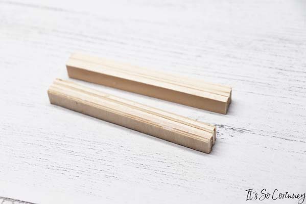 Next, take both of the slat groups and glue one to the bottom edge of the back piece and one at the top edge. Again, make sure that they are perfectly lined up with the bottom and top edge or your candy bar holder will be wonky.