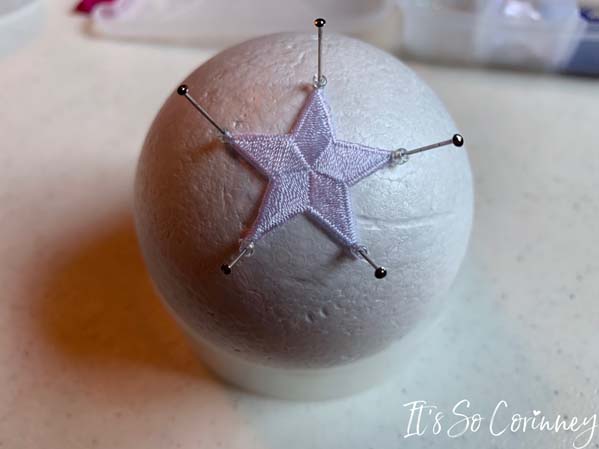 Insert a pin that has a clear seed bead on it into each point of the fabric star.
