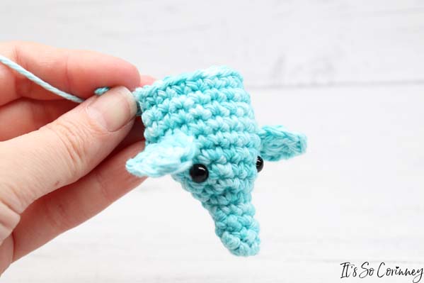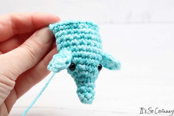 - Sew right ear onto head between rounds 9 & 10 with top of the ear even with the eyes.