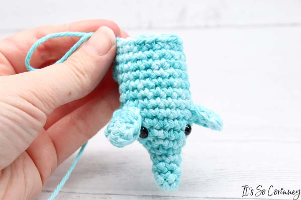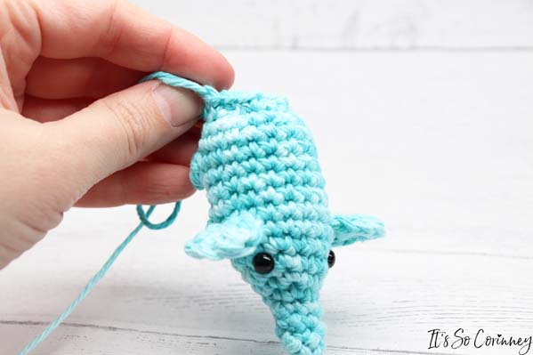 - Sew tail to the top of the back between rounds 17 & 18