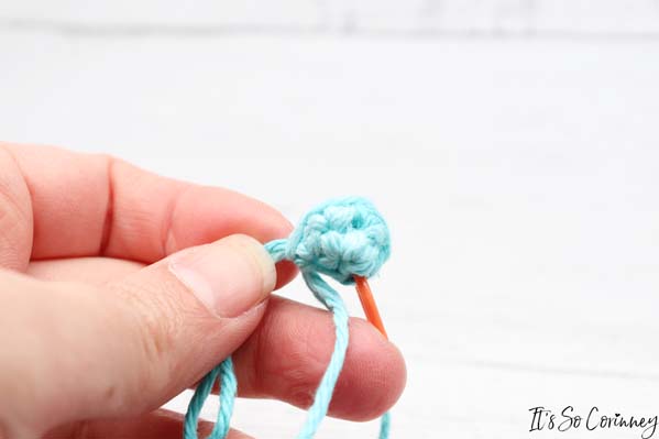 - Single crochet around (6 stitches)
