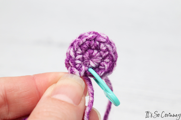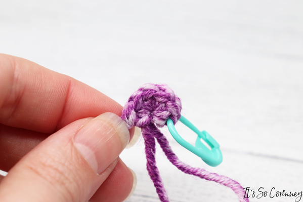 - Then pull tail of magic ring to bring the single crochets together (6 stitches)