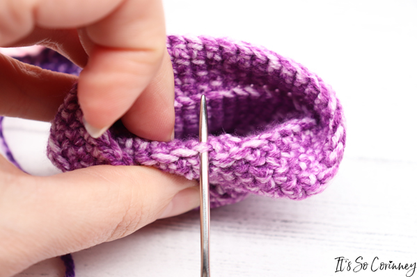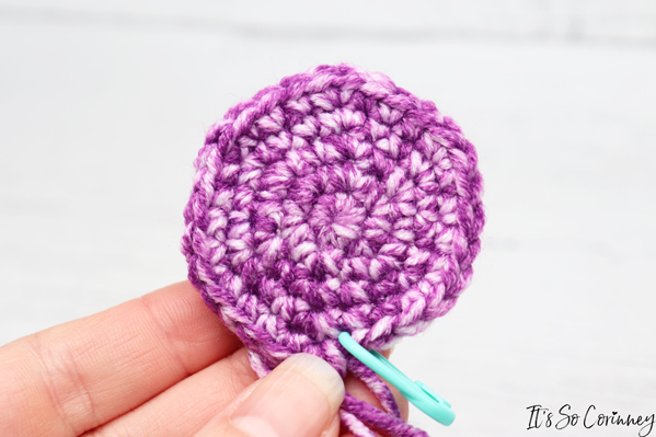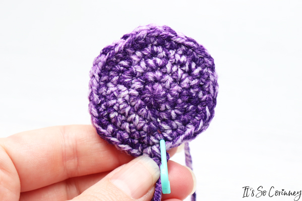 - Fasten off then take your yarn needle and weave your tail inside the stitches to hide