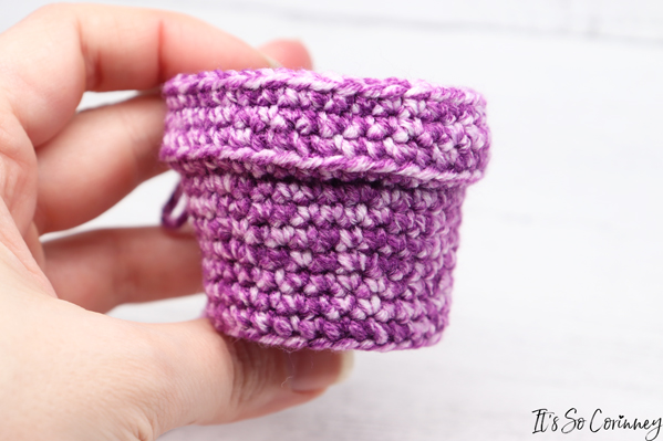 - The pot and soil for the crochet potted rose are crocheted in the round. This means that you don’t join the end of the round with a slip stitch and insert the first stitch of the next round into the first stitch from the last round.