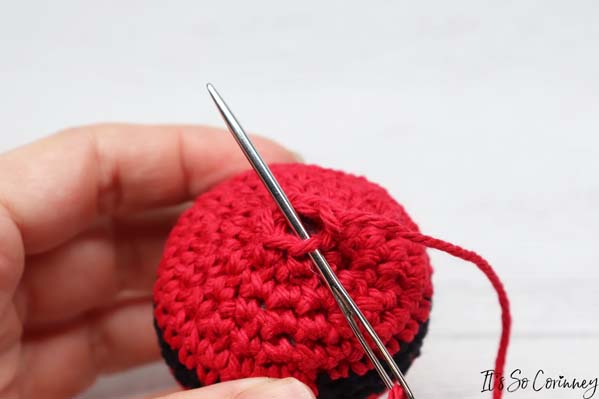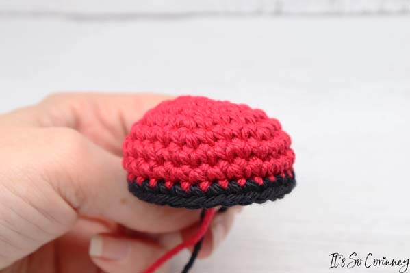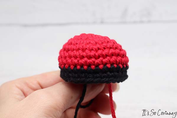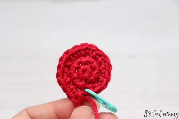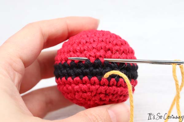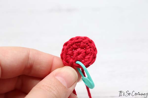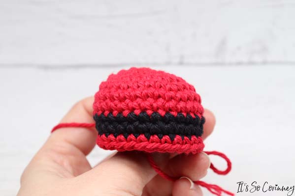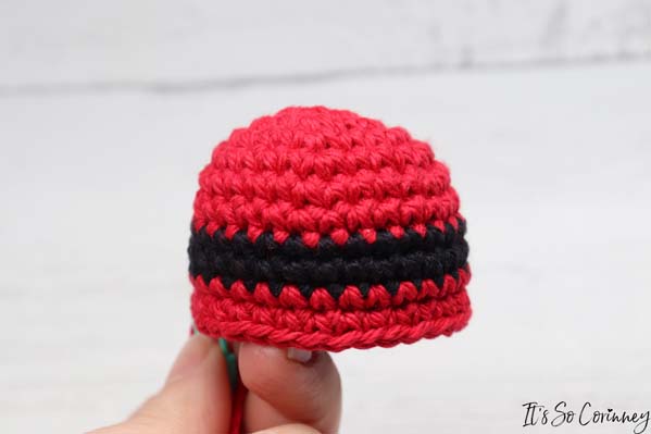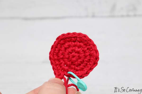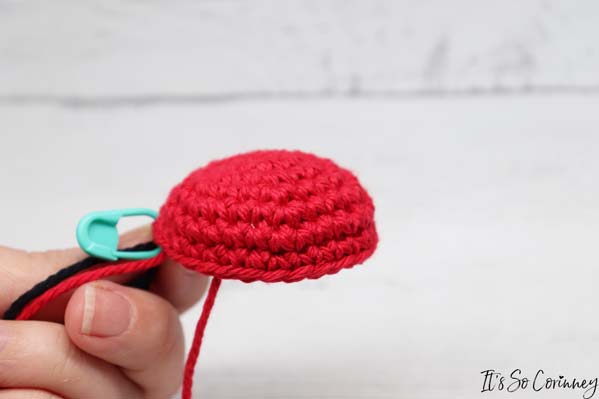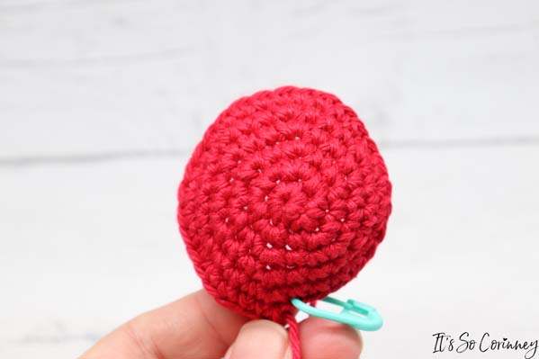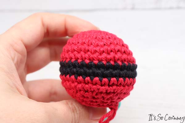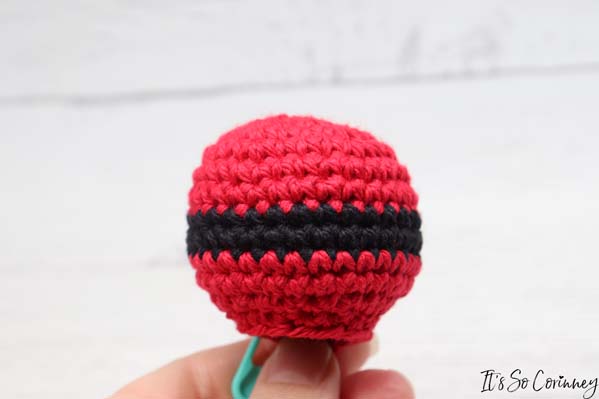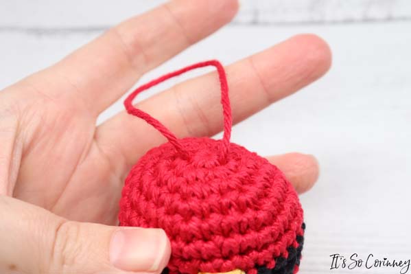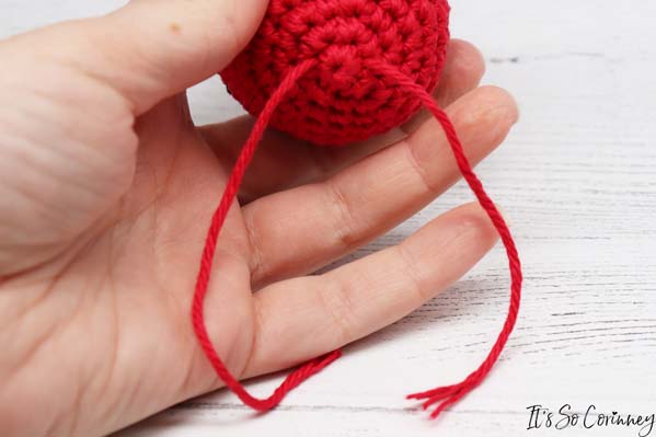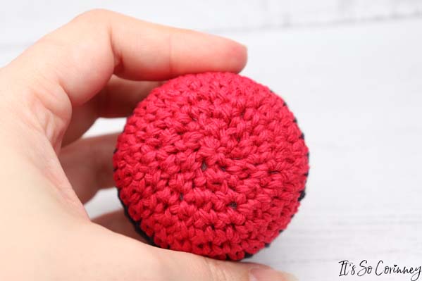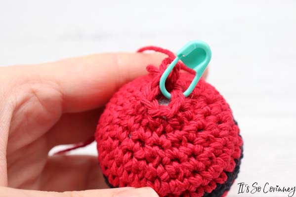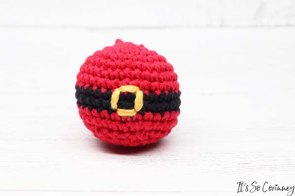 - The Santa ball is crocheted in the round. This means that you don’t join the end of the round with a slip stitch and instead insert the first stitch of the next round into the first stitch from the last round.