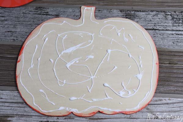 So, you want to make sure that you apply the glue generously. Make sure that you get glue all the way to the pumpkin’s edge.