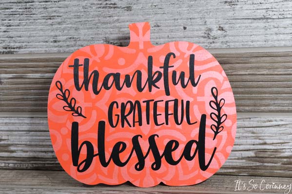 I LOVE decorating for the fall season! Every year during fall there are so many cute signs for sale! Truth be told, I have bought so many of these little signs to decorate my house. However, this year I thought why not make a fall sign instead of buying one? This of course set me down the path of thinking about ALL of the possible sayings that I could put on the sign! Since I couldn’t narrow the sayings down to just one I decided to make this fall pumpkin wood sign double sided so I could put two (total score)!