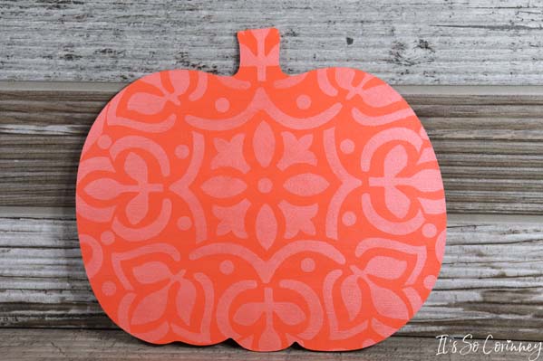 Then I took a stencil that I had on hand and used metallic paint to make my pumpkin have some pizzazz!