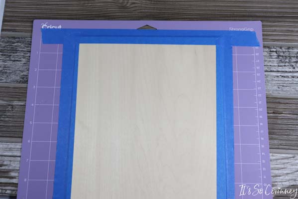 To begin the fall pumpkin wood sign you need to download the free SVG file from The Pattern Stash and upload it into Cricut Design Space. Need help doing this? Check out my post How To Upload SVG Files to Cricut Design Space for step-by-step instructions! Next, you need to tape the basswood to the cutting mat using painter’s tape.