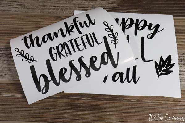 Next, cut and weed the sayings for the two sides of the fall pumpkin wood sign. Make sure you put your white star rollers back in place before you cut your vinyl!