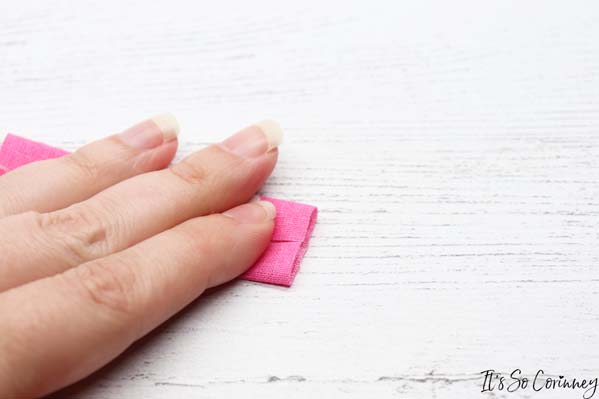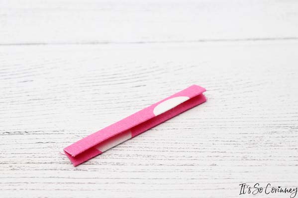 Then take the tab piece and fold it in half lengthways and press.