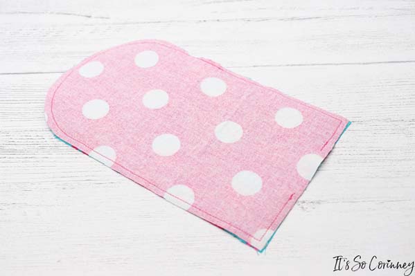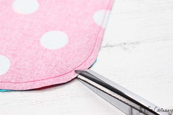 Next, trim the seams and point cut around the round edge of the pouch. This will ensure that it lays flat after you turn it right side out.