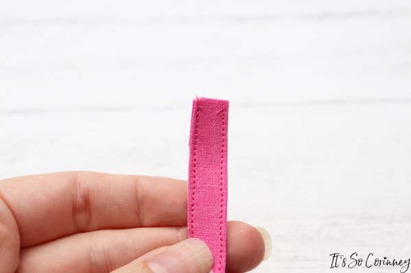 Next, sew down both long sides of the tab really close to the edge.