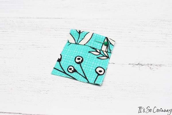 Then take the Pattern A piece and fold down 3/4 inch of the the side that you just top stitched and pin in place.