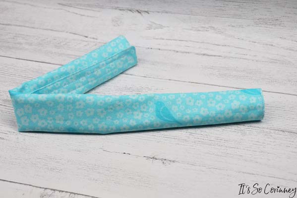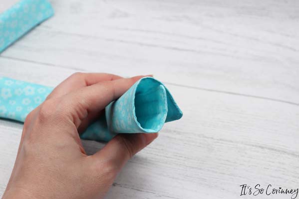 Next, press the basket handle cover and turn under your turning hole. Then sew around the entire edge of the basket handle cover making sure that you close your turning hole.