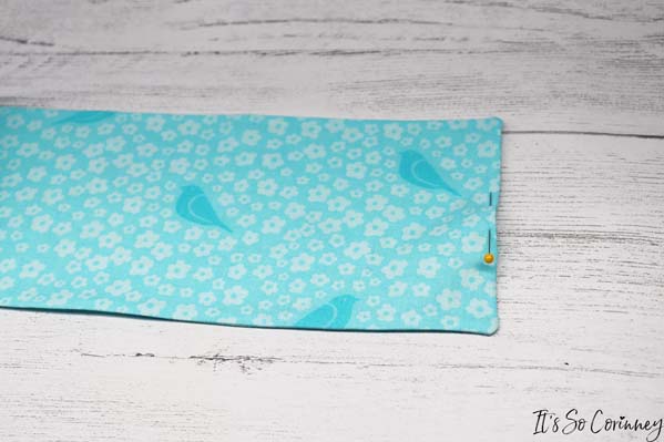 Make sure to leave a 1 inch hole for turning your grocery basket handle cover. Next, sew around the entire handle cover except where you pinned for the turning hole.