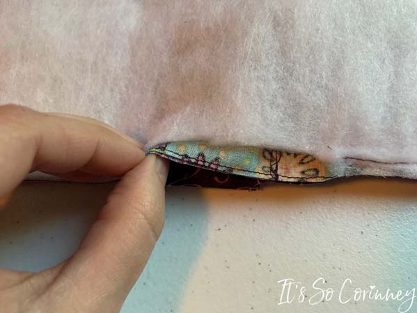 Sew all the way around edge of case making sure to leave an 1 inch opening in bottom of case for turning.