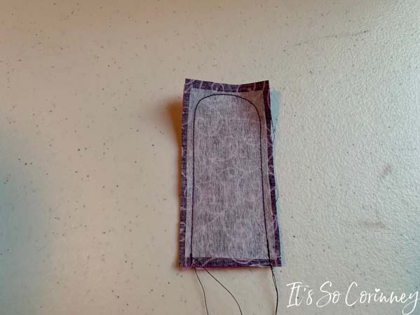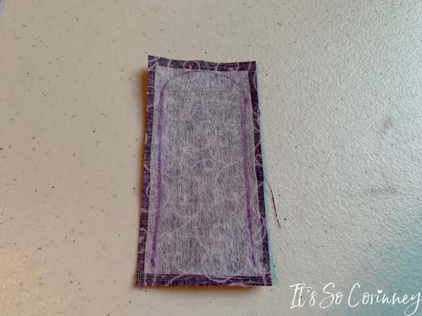 Next, draw a curve on the tab piece that has the interfacing (otherwise you won’t be able to see it).