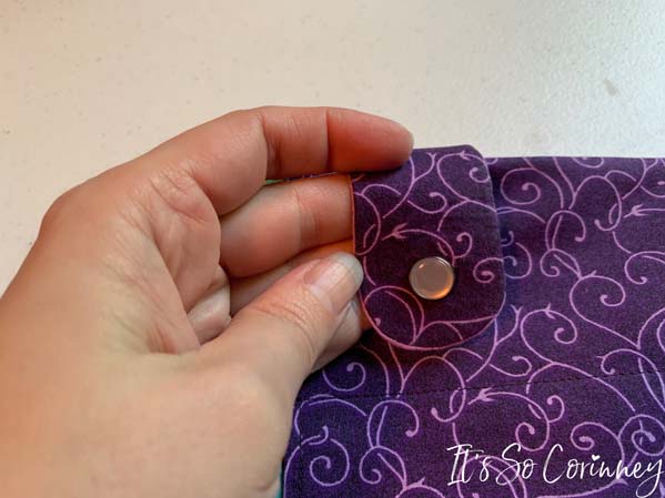 Using the turning hole, insert interfacing where the bottom part of the pearl snap fastener will go. Iron down and then attach the bottom part of the fastener. Double check that the snap is where you want it to be.