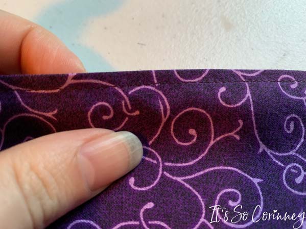 Using a straight stitch sew down the top folded side of the pocket piece.