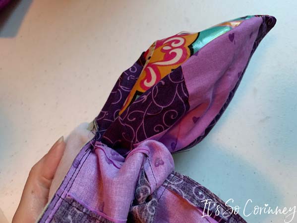 Turn right side out, using a plastic chop stick REALLY helps here!