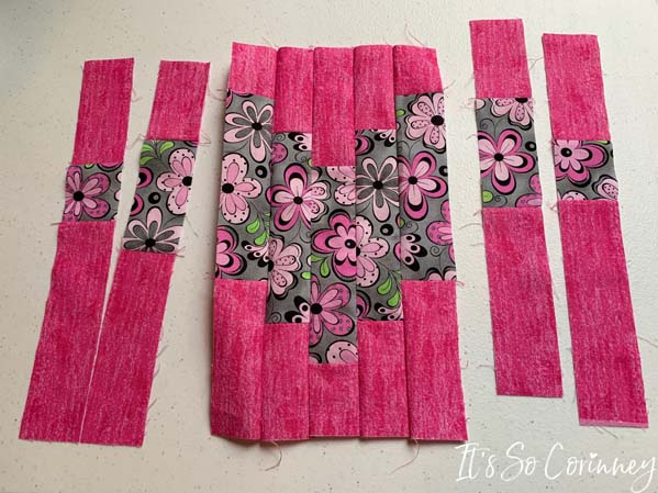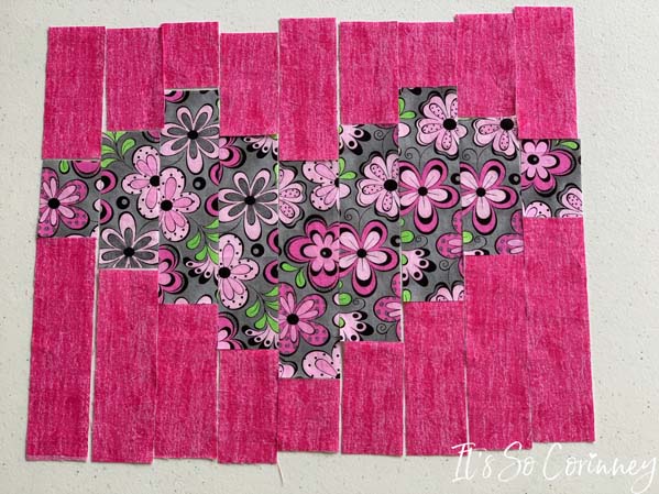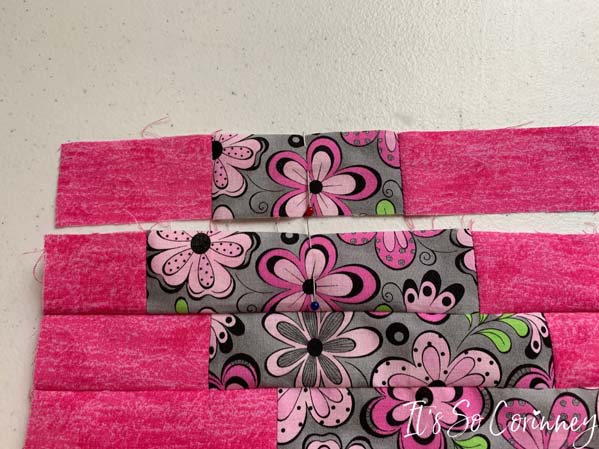 After each strip is sewn press with iron and lay out on table. Next, double check that you sewed each rectangle in the right spot.