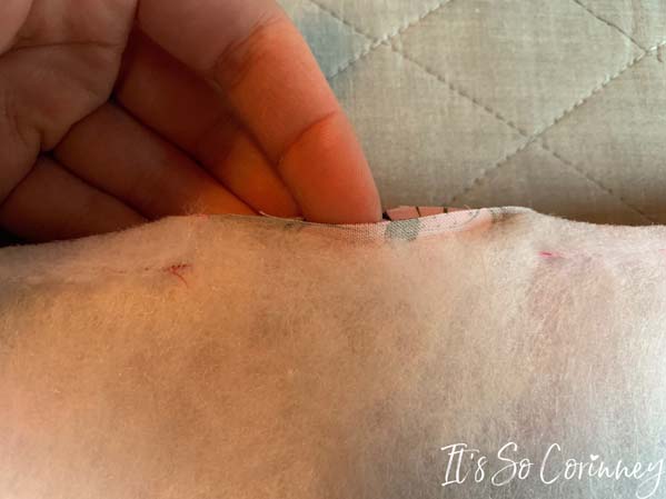 Next fold under, press, and hand sew the turning hole.