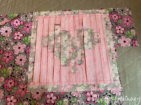 After the top is finished place it right side down on the back material. Then pin and cut the back piece of the quilt.