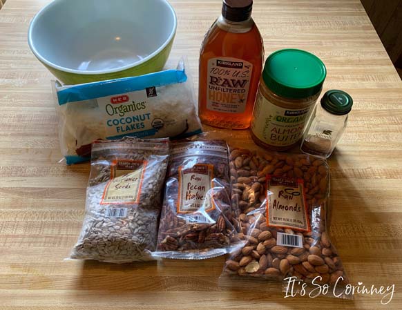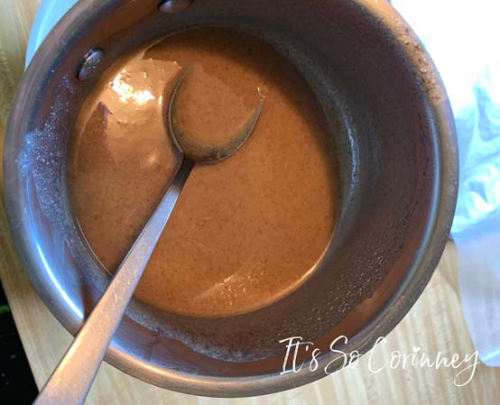 • Melt 1/3 cup coconut oil, 1/4 cup almond butter, and 1/3 cup honey until blended
