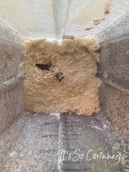 • Blend 1 cup unsweetened coconut until it becomes a powder
