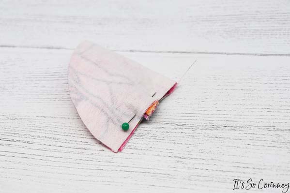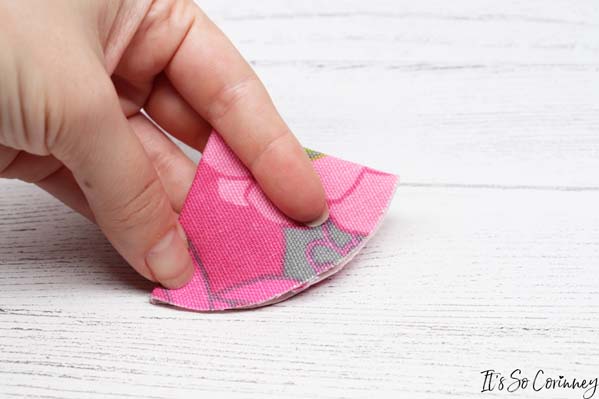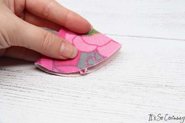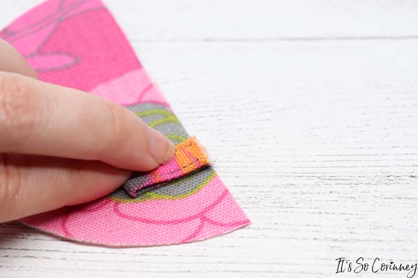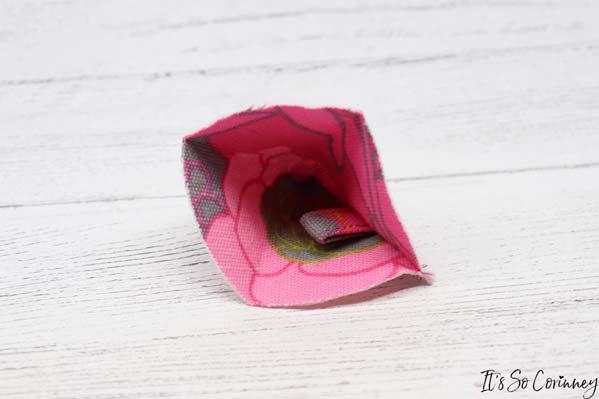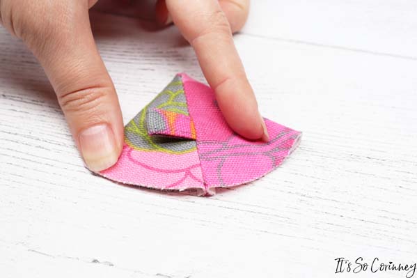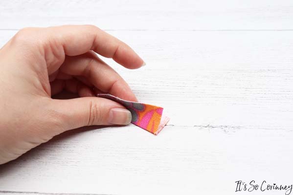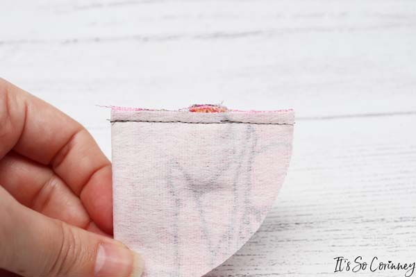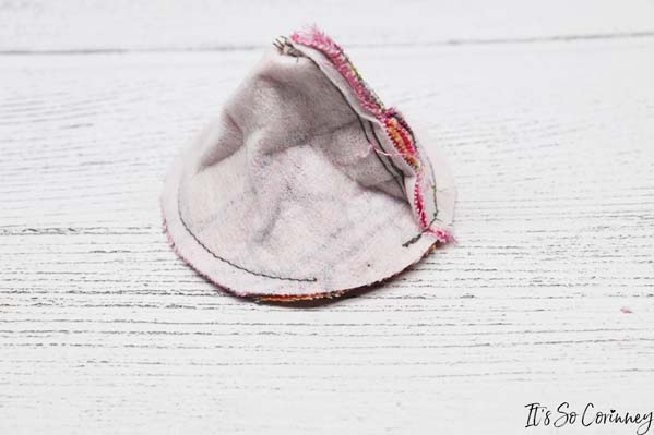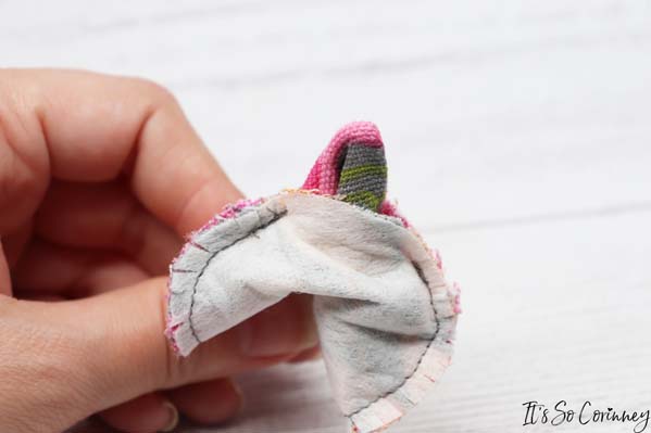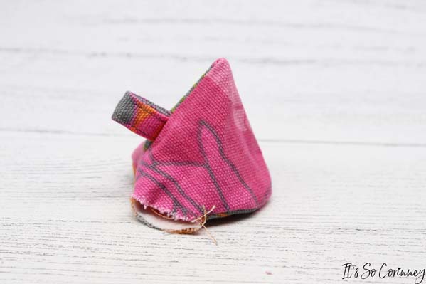 Then carefully cut off the tip of the triangle being sure to not cut the seam.