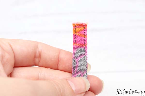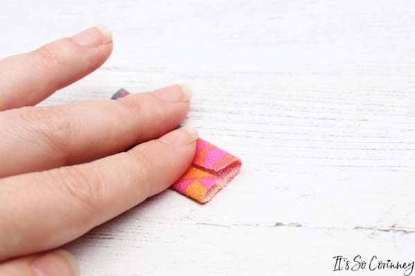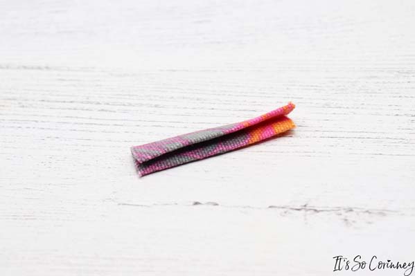 Next, press the tab piece in half lengthwise with wrong sides touching.