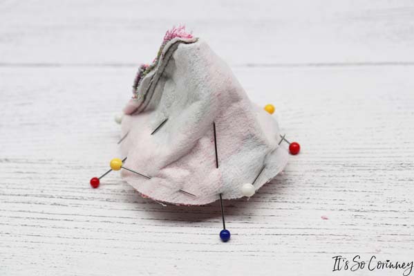 Then flip your side piece back wrong side out. Then fold the side piece in half one way then in half the other way to make marks where 1/4 of the side is. You could also measure but I’m not a huge fan of measuring.
