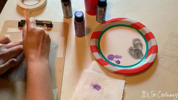 Make sure to press down the stencil right where you are stenciling to ensure you don’t have any paint bleeding under stencil.
