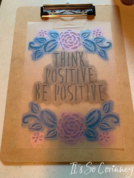 Making sure to lift straight up, remove the stencil from your stenciled clipboard.