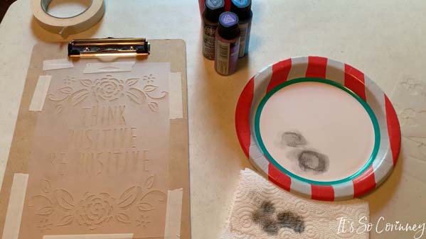 If you use masking tape for your stenciled clipboard make sure that you are very careful when pulling off the stencil. Masking tape tends to stick harder than painter’s tape and can rip your stencil when you pull off.