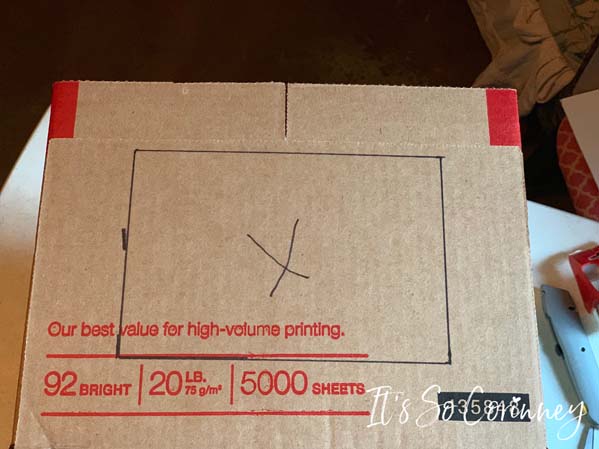 Measure 11/2 inches from each edge on three sides of the box. I obviously didn’t make it perfect but it really doesn’t matter.