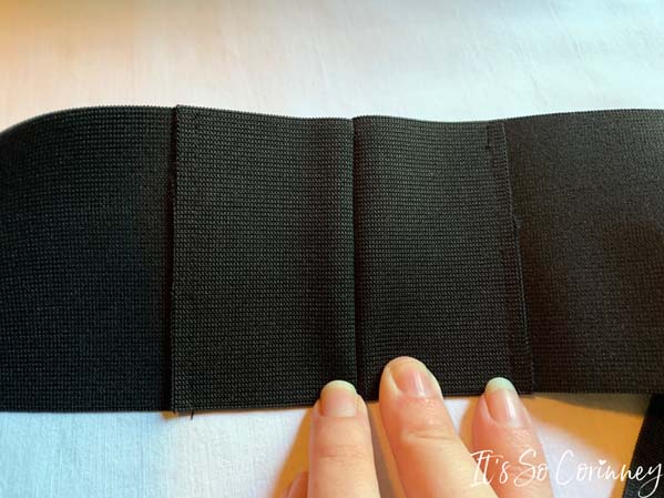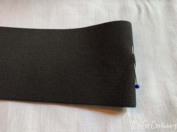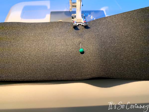 Fold the elastic band flat and find where the two sides are. Then place a pin on either side of the elastic.