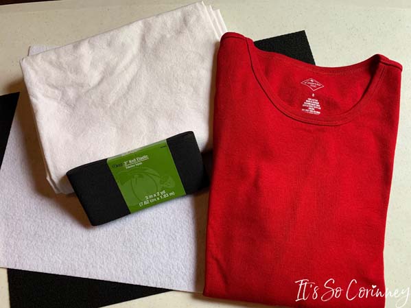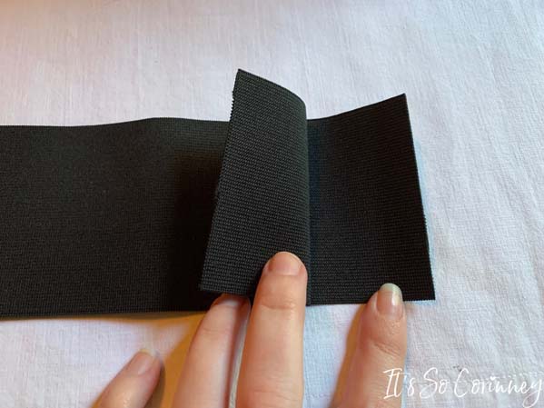 To begin the Pokémon Ball costume, measure the 3 inch wide elastic around your waist to make sure you have the right amount. So, you want to make sure that the elastic isn’t too tight on your stomach when you sit down! Then add a 2 extra inches to the amount you measured for sewing down when done.