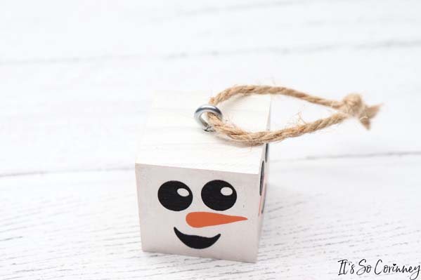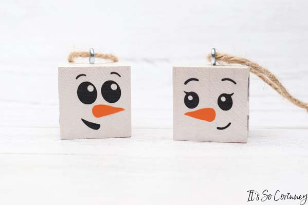 Next, add these super cute snowmen wood block ornaments to your Christmas tree (or gift)!