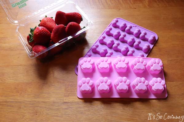 My Molly is part Boston Terrier and does NOT handle the heat well. So, I’m always looking for ways to keep her cool during the summer. Since she absolutely loves fresh fruit I thought why not make her strawberry frozen dog treats. The cool thing about these treats (pun intended) is they are super healthy because the only ingredients in them are strawberries and water! So, are you ready to make some awesome coolness for your furry love?